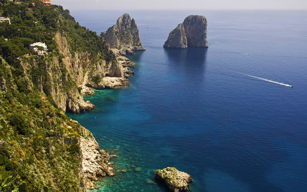 Una delle perle del Golfo di Napoli, situata all'estremità della Penisola Sorrentina cui un tempo era unita. Oggi risulta separata dalla terraferma ma la distanza è così breve che da alcuni punti panoramici e in giorni di aria tersa sembra quasi di poterla toccare. E' incredibile che un'isola cosi' piccola riesca a contenere tanta bellezza, storia, natura. Le coste, proprio per l'origine carsica dell'isola, sono frastagliate, ricche di cale, anfratti e grotte la più celebre delle quali è la Grotta Azzurra; il colore blu intenso delle sue acque, i riflessi della luce che filtra attraverso l'entrata la rendono la più affascinante delle bellezze naturali dell'isola.